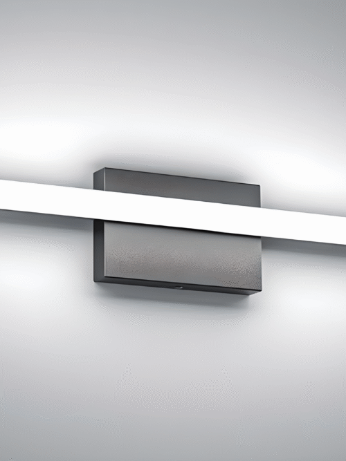 The ZL-LineaGlow™ features a sleek, minimalist LED bar mounted on a compact center block, creating a clean architectural look ideal for modern bathrooms, powder rooms, and vanity setups.